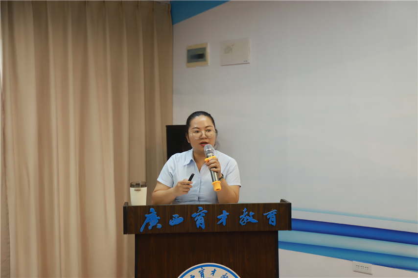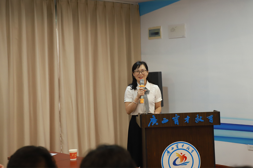 ▲柳州本部招生主管謝愛華作全員招生培訓(xùn)