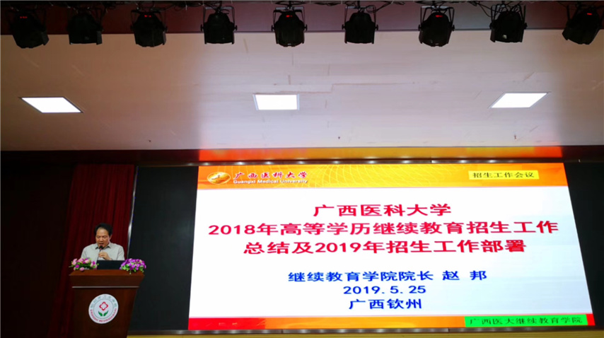 5月25日,廣西醫(yī)科大學(xué)2018年高等學(xué)歷繼續(xù)教育招生工作總結(jié)及2019年招生工作部署會(huì)議在欽州市衛(wèi)生學(xué)校隆重舉行,廣西醫(yī)科大學(xué)繼續(xù)教育學(xué)院院長(zhǎng)趙邦教授、副院長(zhǎng)劉慶委、李春燕以及各市衛(wèi)校、合作醫(yī)院教學(xué)站負(fù)責(zé)人和老師70多人參加了會(huì)議,會(huì)議由劉慶委副院長(zhǎng)主持。