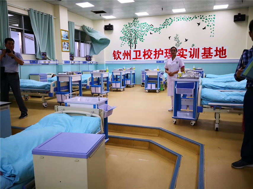 ▲參觀欽州市衛(wèi)生學(xué)校教學(xué)實(shí)訓(xùn)場(chǎng)所