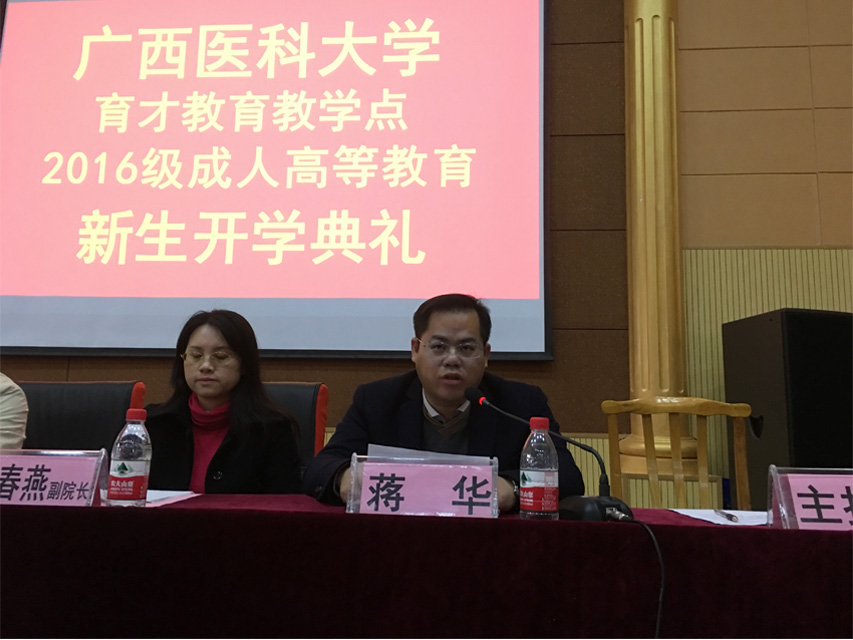 廣西育才教育投資集團董事長、廣西醫(yī)科大學育才教育教學點負責人蔣華老師講話